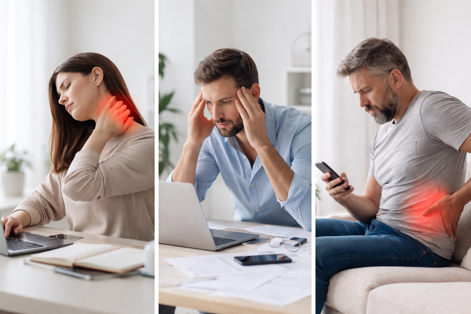 Quando você fica muito tempo sentado, tenso ou estressado, seus músculos permanecem contraídos por horas.